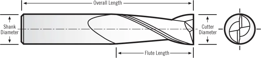 0.375-in Dia 2-Flute End Mill, 0.5625-in LOC, 0.375-in Shank, 2.5-in OAL, 0.01-in Chamfer
