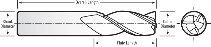 0.3125-in Dia 3-Flute End Mill, 0.875-in LOC, 0.3125-in Shank, 2.5-in OAL, 0.005-in Chamfer