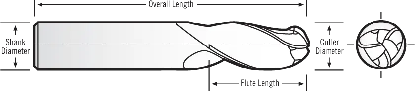 3 Flute Ball End Standard Length Tuffy Grade Carbide End Mill with Hone