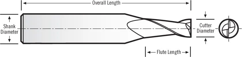 0.0625-in Dia 2-Flute End Mill, 0.25-in LOC, 0.25-in Shank, 2.5-in OAL