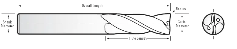 Solid Carbide Flat Bottom Drill, 0.3125in Diam, 2 Flute, 0.938in Flute Length, 0.313in Shank,2.500in OAL, 0.6250in Max Hole Depth, 0.020in Radius, Tuffy Material, Thru Coolant