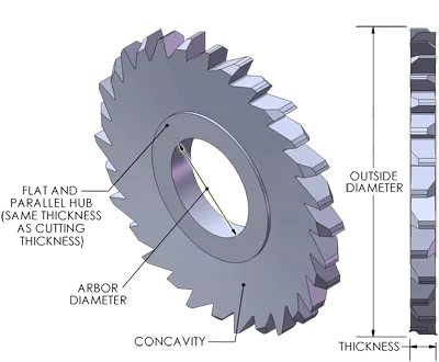 1.25-in Diam. Slitting Saw, 0.02-in Thick, 0.5-in ID, 16 teeth Alternate Tooth Chamfer, Double Concavity, 0.750-in Hub
