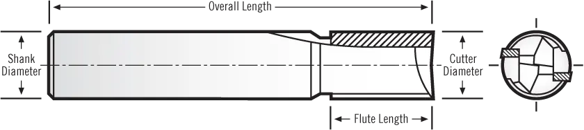 PCD Composite Finish Router 0.375-in Dia, 2 Flute, 0.75-in LOC, 2.5-in OAL